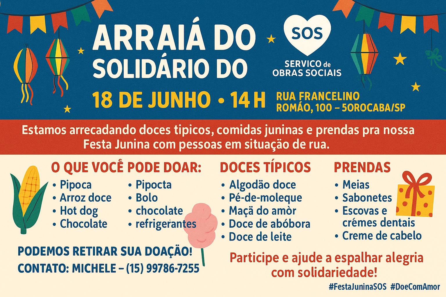 🧡 #FestaJuninaSOS #DoeComAmor #ArraiaSolidario