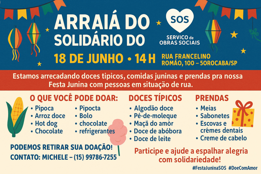 🎉 Arraiá Solidário do SOS – 18 de Junho 🎉
